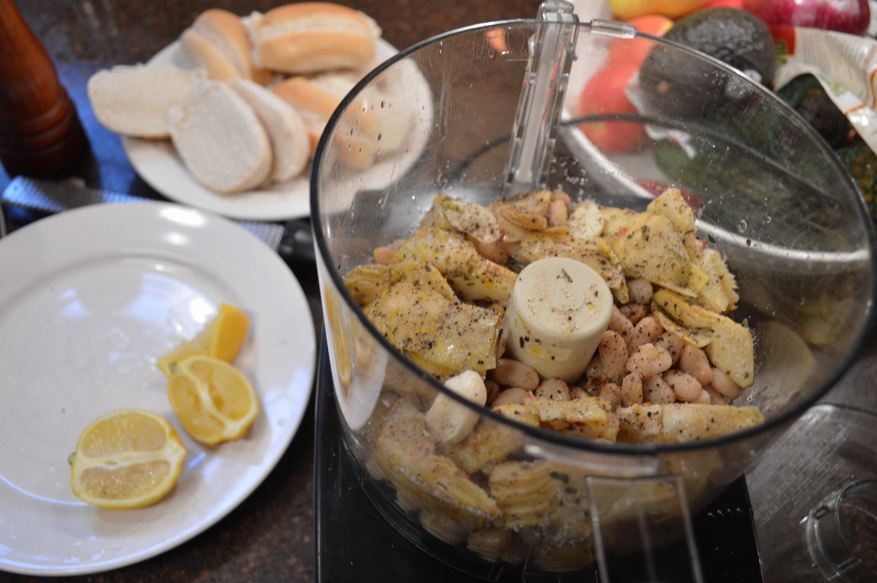 This cold, rainy Monday called for some soup. I was going to make a bean soup or chili, but I just couldn’t get myself together to get the soup started. We were all in a lazy, grumpy mood. I saw a couple of cans of Progresso tomato and basil soup, I put some leftover white rice in the soup and we had our vegan tomato and rice soup. I also used those leftover dinner rolls, lightly coated them in olive oil and put them on the grill pan and spread some homemade white bean spread on them. I prepared the bean spread by placing all the following in a food processor and pulsing until smooth: