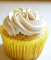 Our Vegan Lemon Vanilla Cupcakes consists of lemon cake topped with a vanilla  frosting.