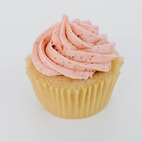 Our Vegan Strawberry Vanilla Cupcakes consists of vanilla  cake topped with a strawberry frosting.